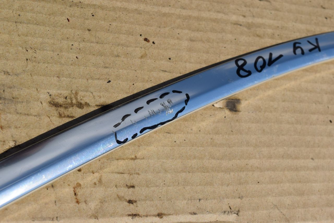 передней левой двери. Верхний. Царапина (на фото).