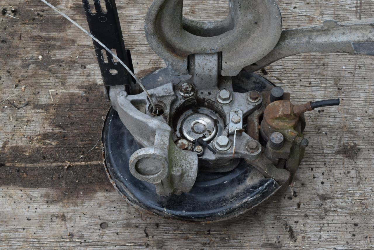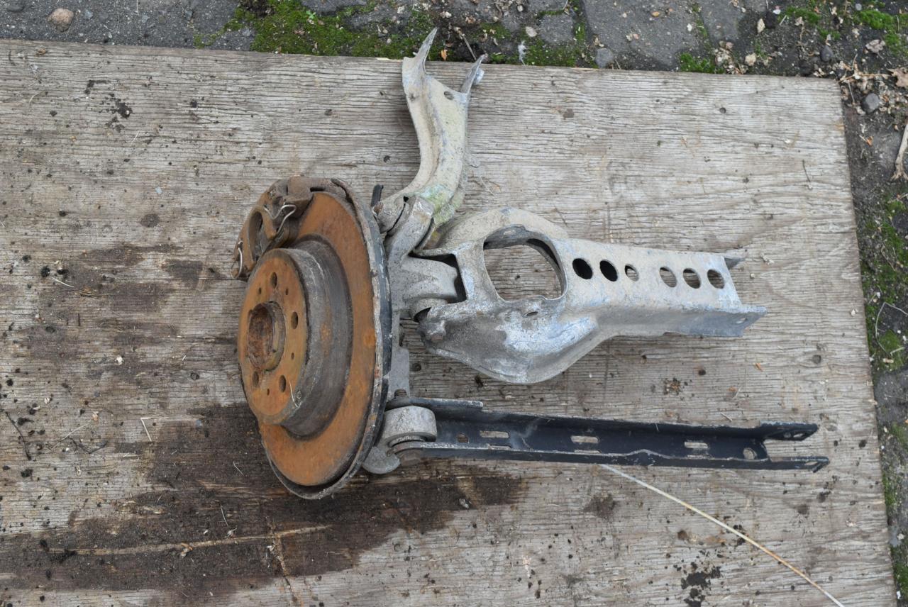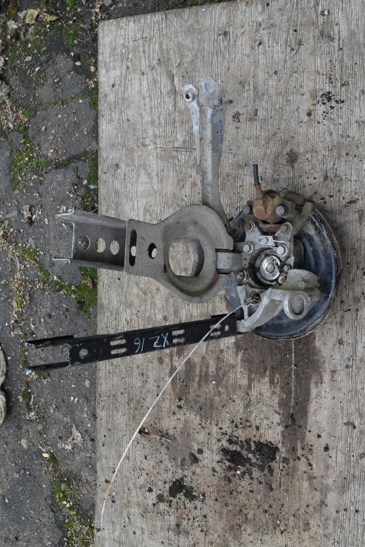 в сборе как на фото (рычаги, ступица, суппорт, диск тормозной). Без дефектов.